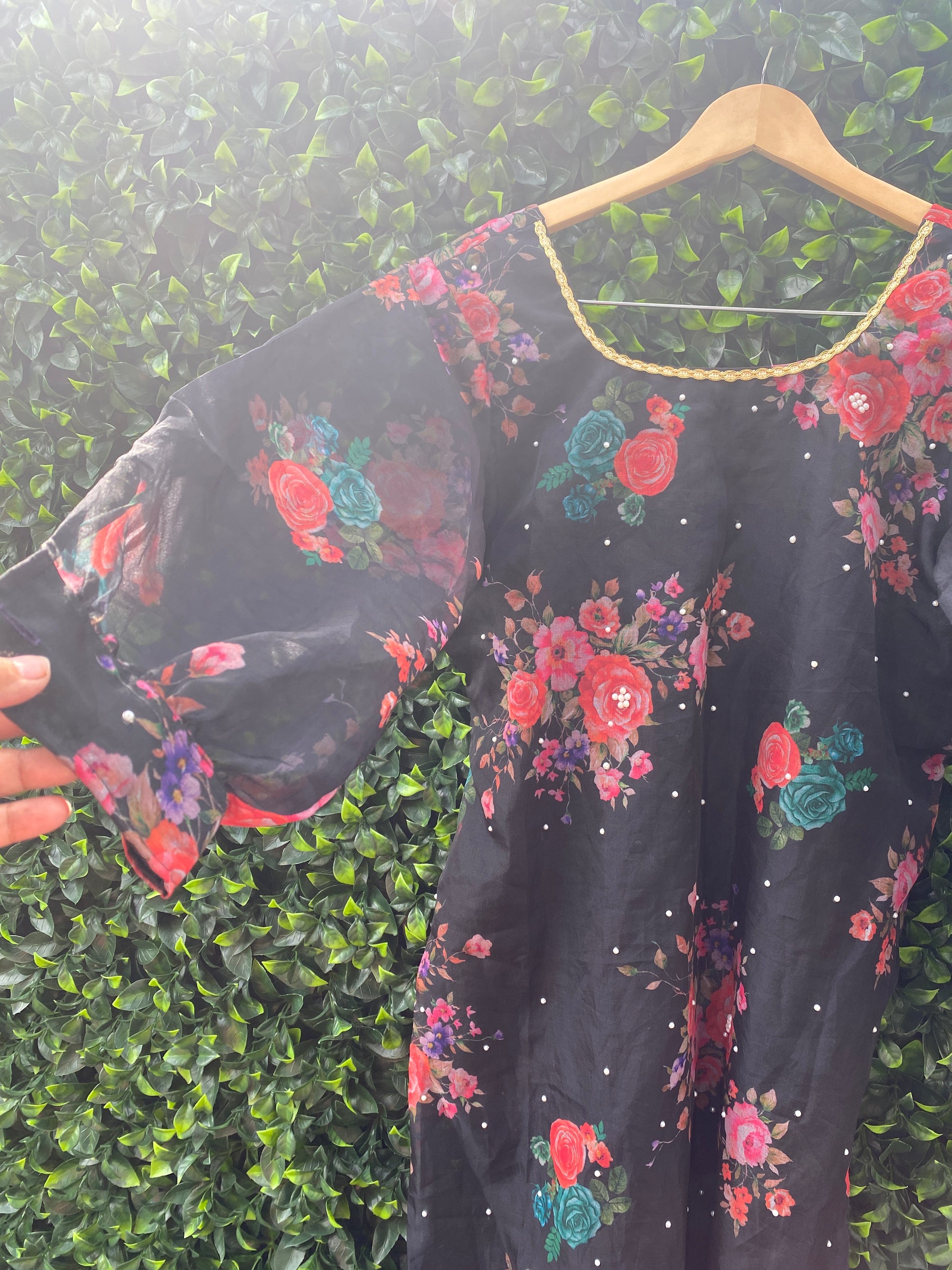 “This designer custom made women’s kurta is comfortable and stylish, made from soft  organza fabric with a nice fit. It’s perfect for everyday wear or special occasions.”